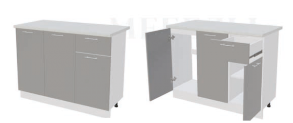 Глубина нижних шкафов без учета столешницы: 444 мм, с учетом столешницы 600 мм