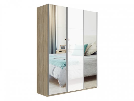 Шкаф-купе 3-х дверный Прайм Зеркало/Белое стекло/Зеркало (Е1)