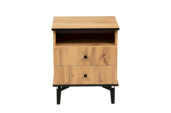 Прикроватная тумбочка содержит три отделения – открытую полку и два выдвижных ящика. Столешница имеет оптимальную высоту – такую, чтобы можно удобно и легко дотянуться и положить вещь, лежа в кровати. На тумбу можно поставить лампу, в открытую полку положить книгу, телефон, планшет – они будут одновременно и под рукой, но в то же время не будут вам мешать. В выдвижных ящиках хорошо хранить документы. Такие тумбочки обычно приобретают в паре – для нее и для него – и ставят по обе стороны двуспальной кровати. Если тумбочка женская, в выдвижные ящики размещают духи, косметику, дамские мелочи, если мужская – бумаги, ежедневники, гаджеты.