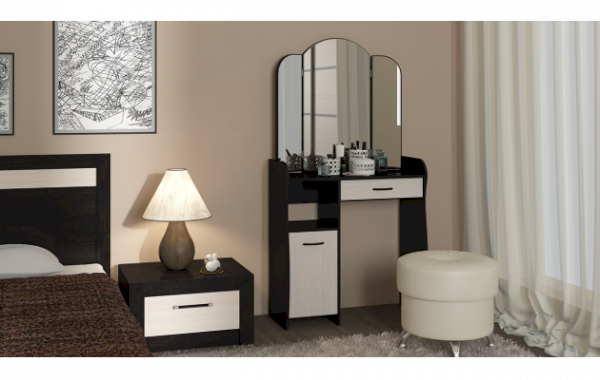 Благодаря разнообразию цветовой палитры туалетный стол «София» идеально подойдет как для светлого помещения, так и для интерьеров в темных тонах, сделав комнату предметом особого внимания и притяжения.