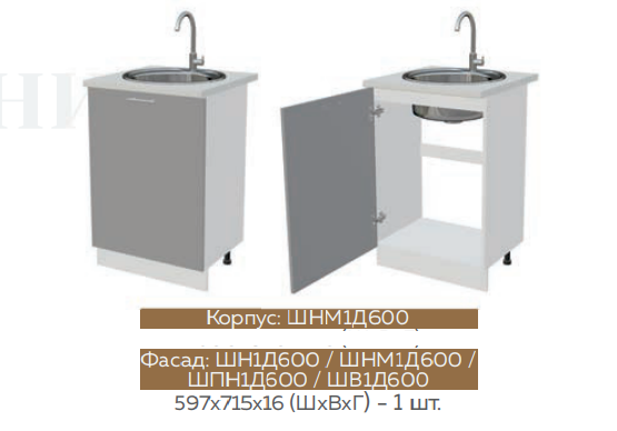 ШНМ1Д600 Шкаф нижний под мойку (Экзотическое дерево Амазония)