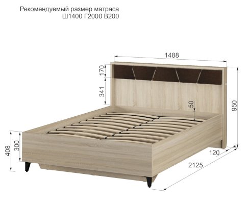Кровать со спальным местом 140х200 см: