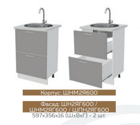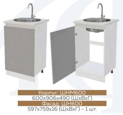 Глубина нижних шкафов без учета столешницы:445 мм, с учетом столешницы 600 мм