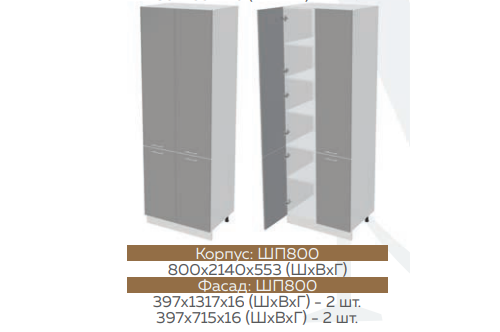 Высота нижних шкафов: 820 мм