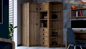 Пенал с открытыми и закрытыми полками служит для хранения учебников, тетрадей и других письменных принадлежностей. Декоративные накладки и профиль из МДФ по вертикальным краям закрывают острые края корпуса и придают шкафу более эффектный и надежной вид. Декоративные элементы на фасаде и металлические ручки MARINE бронзового цвета стилизованы под морскую тематику. Идеально компонуется со всеми модулями системы Валенсия.