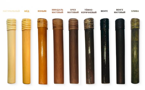 Цвета: натуральный, мед, коньяк, миндаль матовый, орех матовый, темно-коричневый, венге, венге матовый, олива.