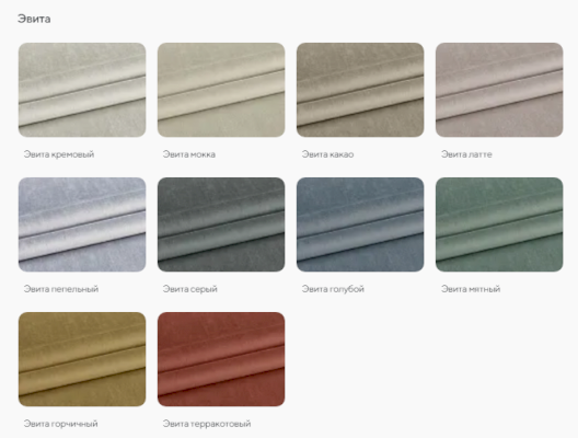 Цвет БЕЖЕВЫЙ / БЕЛЫЙ / ГОЛУБОЙ / ЖЕЛТЫЙ / ЗЕЛЕНЫЙ / КОРИЧНЕВЫЙ / ОРАНЖЕВЫЙ / РОЗОВЫЙ / САЛАТОВЫЙ / СЕРЫЙ / СИНИЙ / СИРЕНЕВЫЙ / КОФЕ