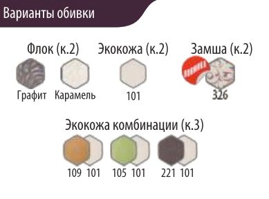 Цвет обивки: Милк (экокожа), Крем (экокожа), Умбер (экокожа), Лагуна (велюр), Коньяк (велюр), Латте (велюр), Мохито (велюр), Графит (велюр)